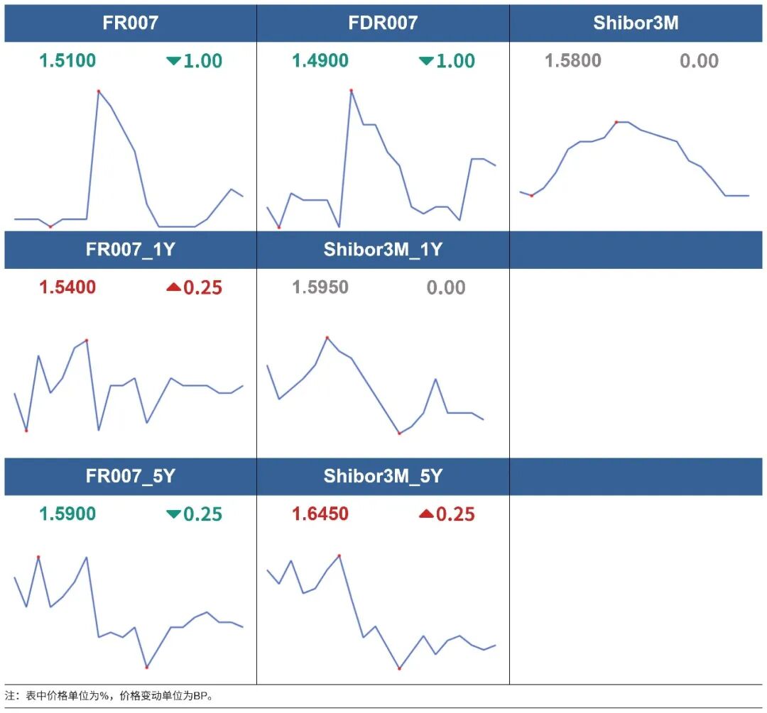 隔夜、1个月、3个月Shibor诀别报1.415%、1.523%和1.58%,诀别较前下行9.3BP、下行0.2BP和握平。