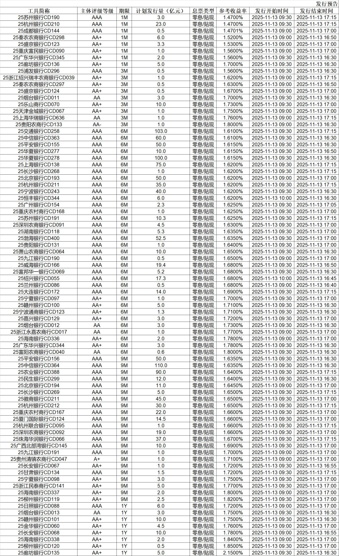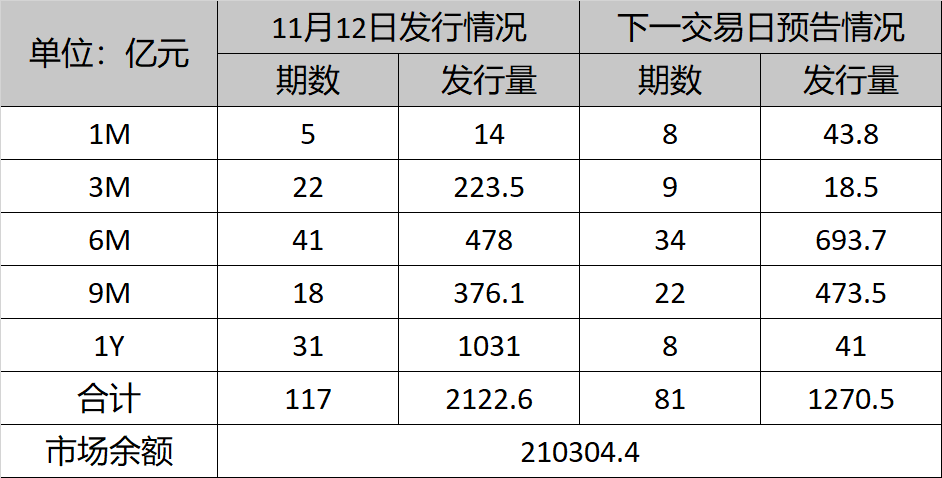 同行存单刊行117只,骨子刊行量2122.6亿元,较前日增多730.2亿元。